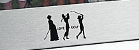 The Silhouette ladies design (see additional image for new artwork on the clock). The alarm clock is made of glass for a elegant design. The clock measures 51/2"W x 7"H x 2"D. The clock uses one AAA battery (not included). Boxed.